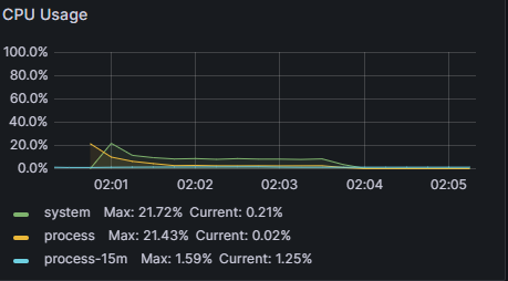 예상했던 것과 같이 CPU 사용량이 약 40%까지 올라간 것이 확인 되었다.