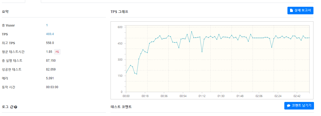 그래서 vuser를 1명으로 두고 다시 테스트를 해보니